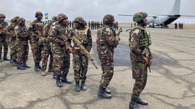 Izi ngabo za Kenya zirasangayo ikiciro cya mbere cyazo cyahageze muri weekend ishize, nk’uko umunyamakuru wa BBC dukesha iyi nkuru uri aho zahagurukiye abivuga.