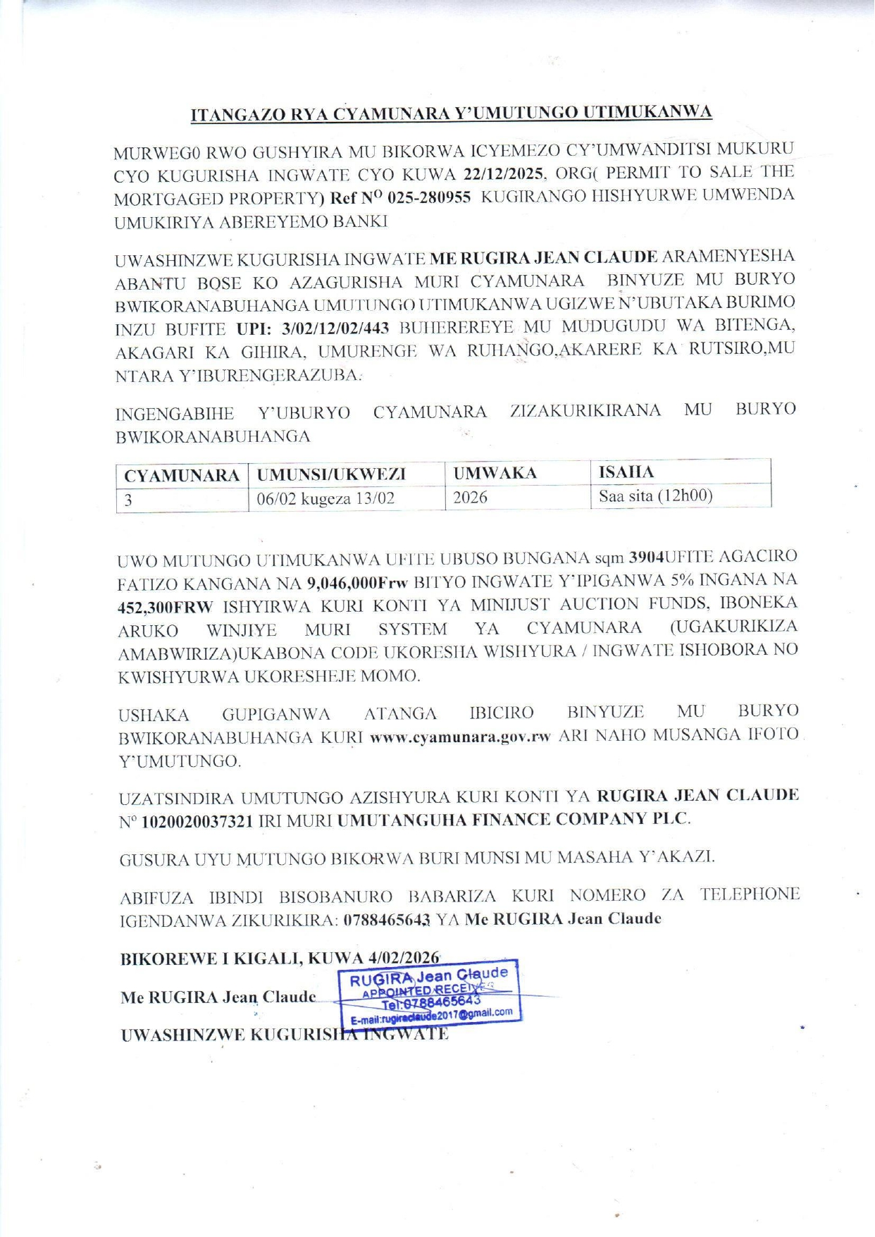 Post navigation Cyamunara y’ubutaka biriho inzu bubaruye kuri UPI: 5/07/10/02/10324 buherereye Nyamata / Bugesera