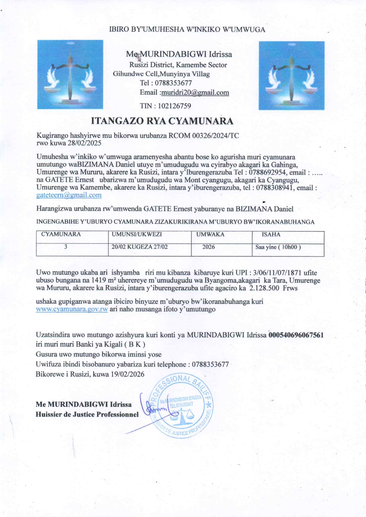Yanditswe ku wa 20 Gashyantare 2026 na AMAKURU MEDIA Post navigation Cyamunara y’ubutaka buri mu kibanza UPI: 3/01/11/03/3531 buherereye Ruganda / Karongi Cyamunara y’ishyamba riri mu kibanza UPI: 3/06/11/07/2741 riherereye i Kamembe / Rusizi