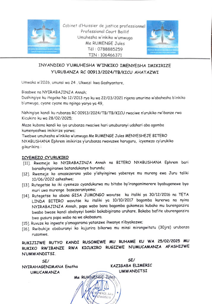Yanditswe ku wa 24 Gashyantare 2026 na AMAKURU MEDIA Post navigation Inyandiko imenyesha Saidi Bizimana imikirize y’urubanza ubarizwa ahatazwi