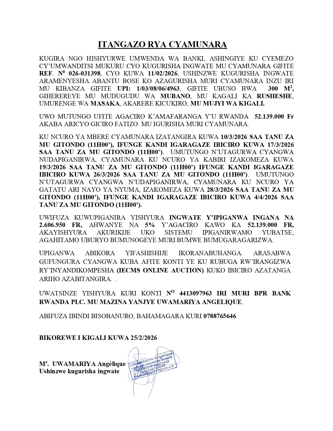Yanditswe ku wa 25 Gashyantare 2026 na AMAKURU MEDIA Post navigation Itangazo ryo guhindura amazina ya Kuradusenge Jean De la Croix akitwa Kayiranga Ignace